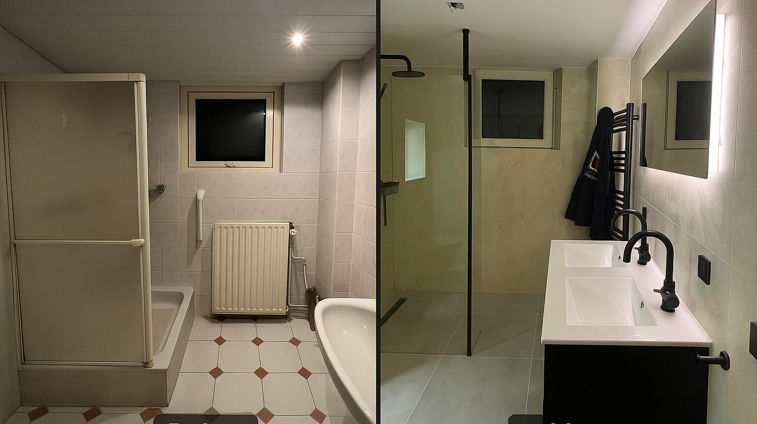 Volledige renovatie van badkamers en keukens. Strak, modern en professioneel opgeleverd.